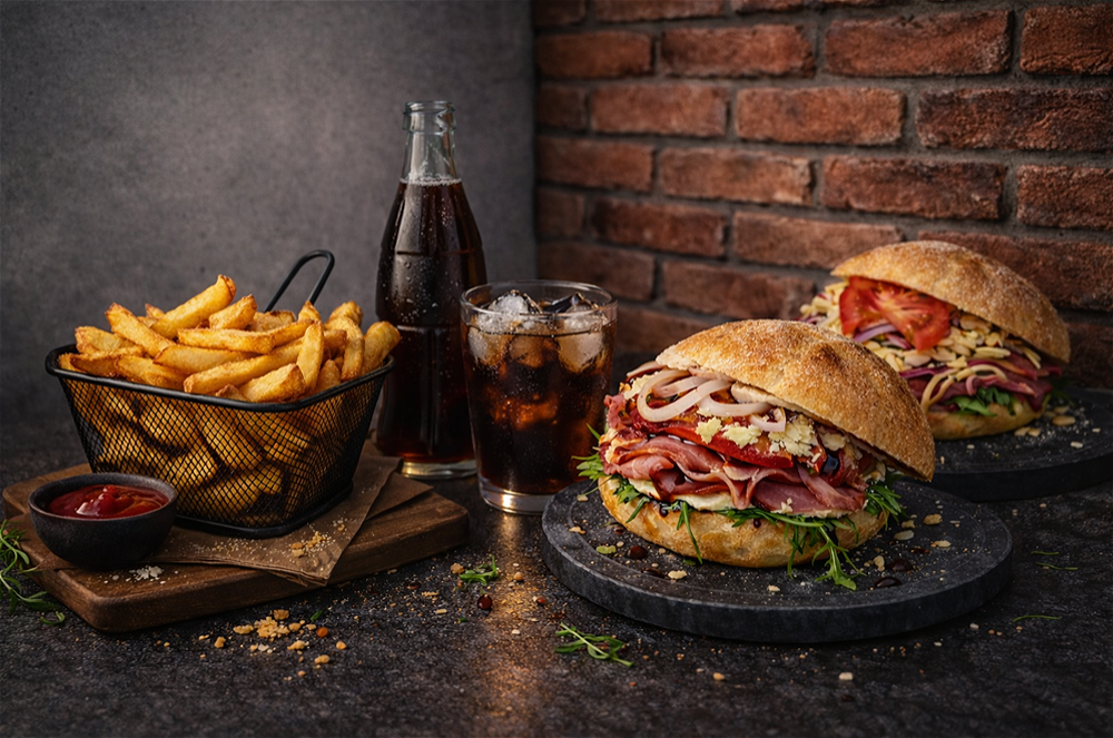 Al onze Menu's worden geserveerd met verse patat, een frisse salade en een frisdrank naar keuzen